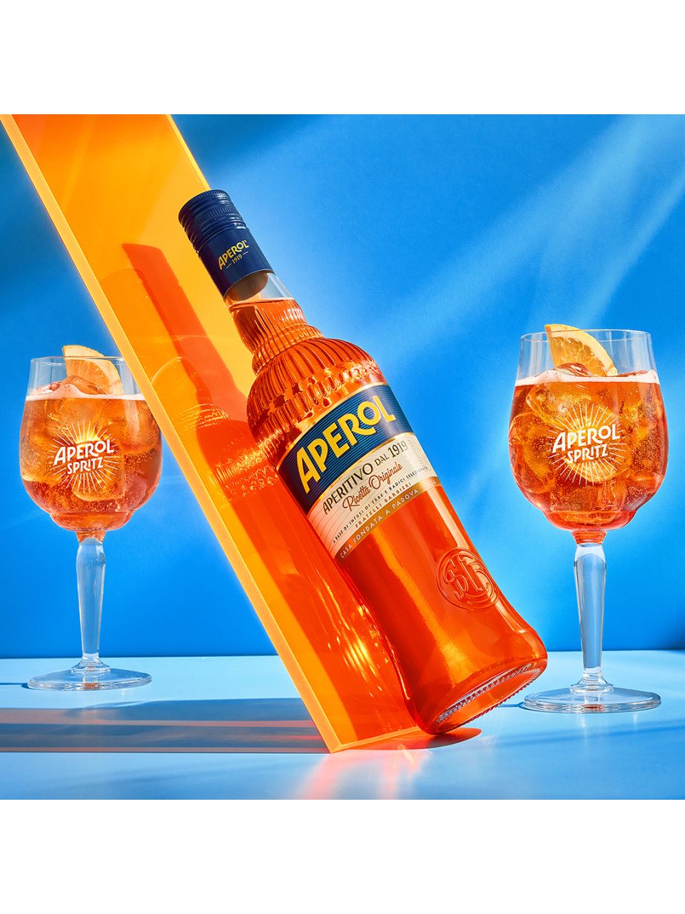 Aperol ist das Herz des Aperol Spritz und der perfekte Aperitif. Seine strahlende orange Farbe und sein besonders bitter-süßer Geschmack kommt aus einem Geheimrezept, das seit seiner Herstellung 1919 nie geändert wurde.
