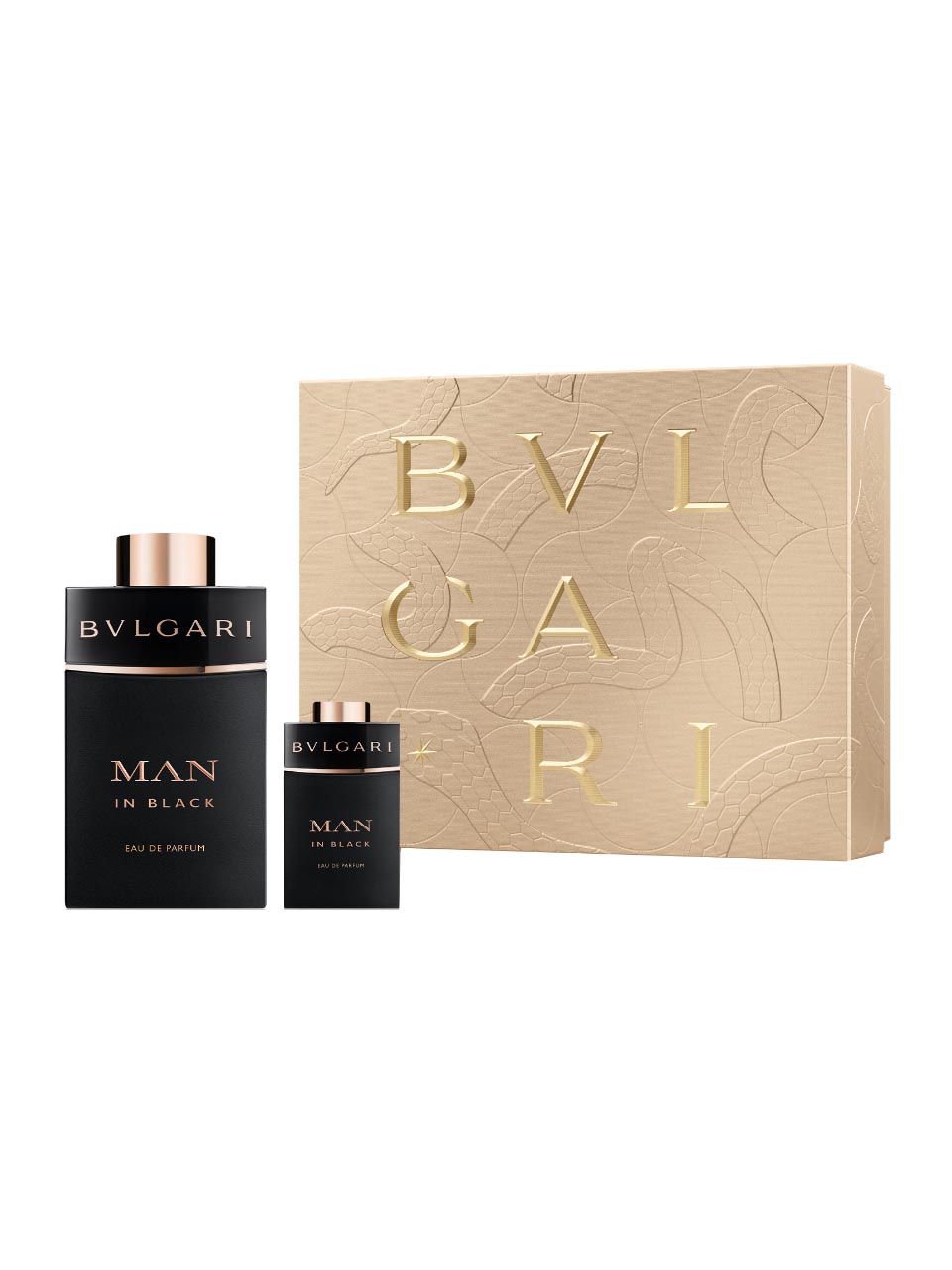 Man in Black Eau de Parfum embodies the radiant energy, hypnotic movement and primal intensity of Fire. From the first bright spark to the smoldering embers, this charismatic fragrance, bold yet mysterious, captures the untamed power of a flame. Immerse yourself into the enchantment of the Christmas season and celebrate the magic of gifting with the Bvlgari Man in Black Christmas set containing a 100 ml Eau de Parfum and a 15 ml miniature Eau de Parfum.