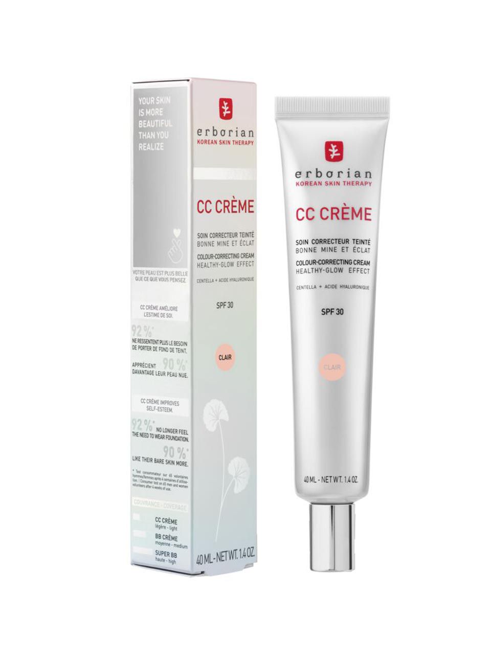 DAS IKONISCHE NATÜRLICHE UND STRAHLENDE FINISH Dank ihrer transformierenden Textur mit verkapselten Pigmenten ist die CC Cream die koreanische Pflege mit leichter Deckkraft, die sich perfekt mit deiner Haut verbindet und einen ebenmäßigen, natürlichen und strahlenden Teint verleiht. Die Formel, angereichert mit 2 % Tigergras (Centella Asiatica) und Hyaluronsäure, spendet sofort und 24 Stunden lang Feuchtigkeit und verbessert Tag für Tag die Hautstruktur. Nach 28 Tagen ist die Haut sichtbar verwandelt und verschönert. Zusätzlich schützt sie die Haut dank Lichtschutzfaktor 30 vor schädlichen Sonnenstrahlen.