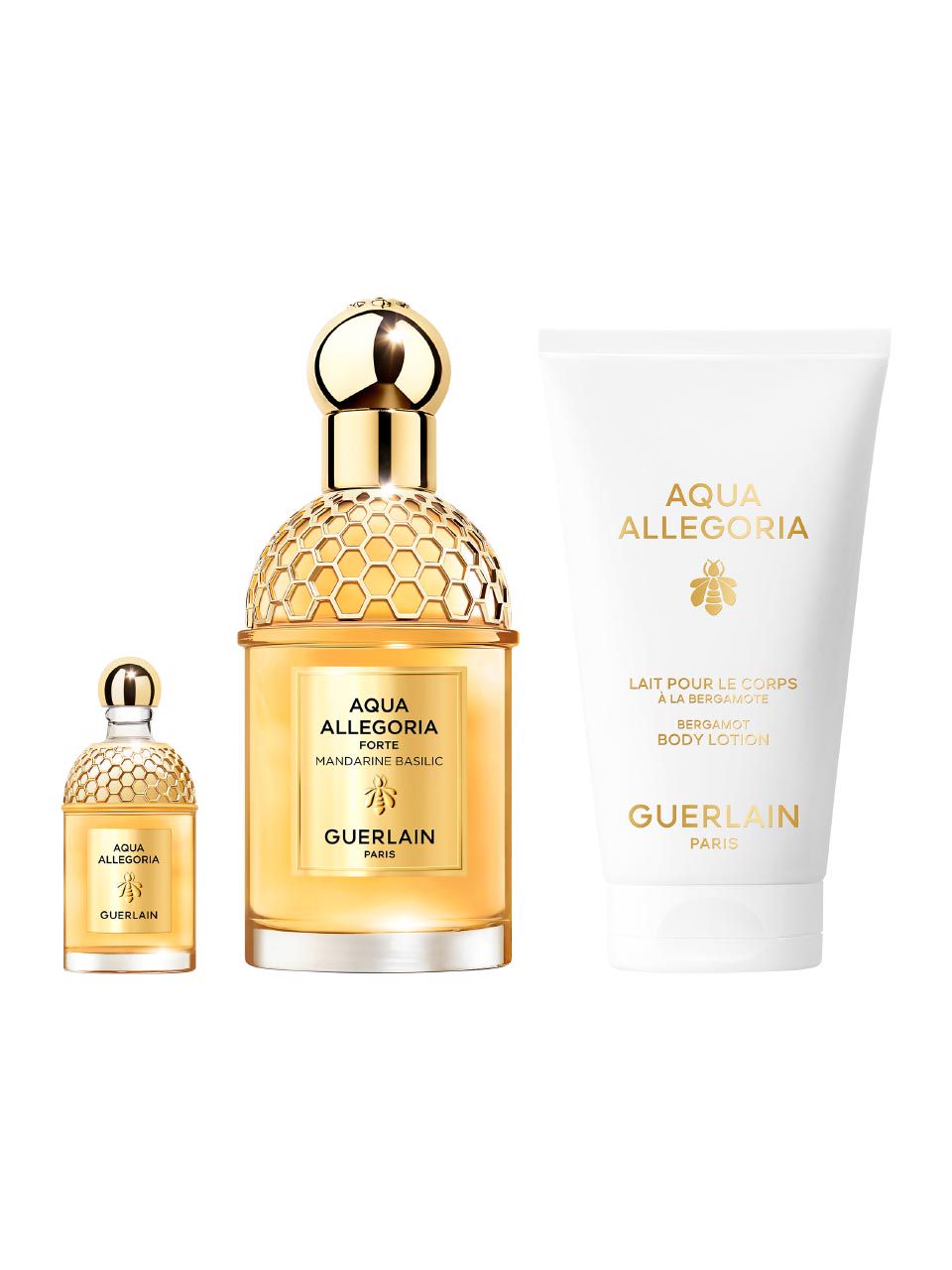 Entdecken Sie die Weihnachtssets, die wie eine eindrucksvolle Inszenierung in einem mit kostbaren Details geschmückten poetischen Dekor gestaltet sind. Das Set enthält: - das Eau de Parfum Aqua Allegoria Mandarine Basilic Forte (75 ml und eine Miniatur 7,5 ml). Eine goldene Mandarine, die mit lebhaftem Basilikum kombiniert und von der Wärme des Sandelholzes und der köstlichen Vanille-Tinktur abgerundet wird. - eine Bergamotte-Bodylotion (75 ml), die die ganze Vitalität der sonnengetränkten Früchte aus Italien zum Ausdruck bringt, wie sie in den kalabrischen Hainen geerntet werden. Die GUERLAIN-Geschenksets erhalten eine exklusive, mit zart funkelnden Details versehenen Verzierung in tiefem Rot. Die Papierkünstlerin Mélissandre Vidal hat einen vom Jugendstil beeinflussten festlichen Schmuck und damit eine echte Hommage an die Natur geschaffen. Verschenken Sie die ikonischen Kreationen der Maison in einer wunderbar poetischen Erzählung. IM NAMEN DER SCHÖNHEIT ENGAGIERT SICH GUERLAIN FÜR EINE BESSERE UND VERANTWORTUNGSVOLLERE WELT, MIT DER BIENE ALS WÄCHTER. Dieses Set ist im Sinne einer Kreislaufwirtschaft so konzipiert, dass sich die Umweltauswirkungen reduzieren: - Wiederverwendbare Geschenkbox mit herausnehmbarer Polsterung - Box und Füllmaterial aus recycelbarem Papier und Karton¹, die aus gut bewirtschafteten Wäldern stammen. - Tube aus mindestens 26% recyceltem Material ¹Siehe Empfehlungen für die lokale Mülltrennung