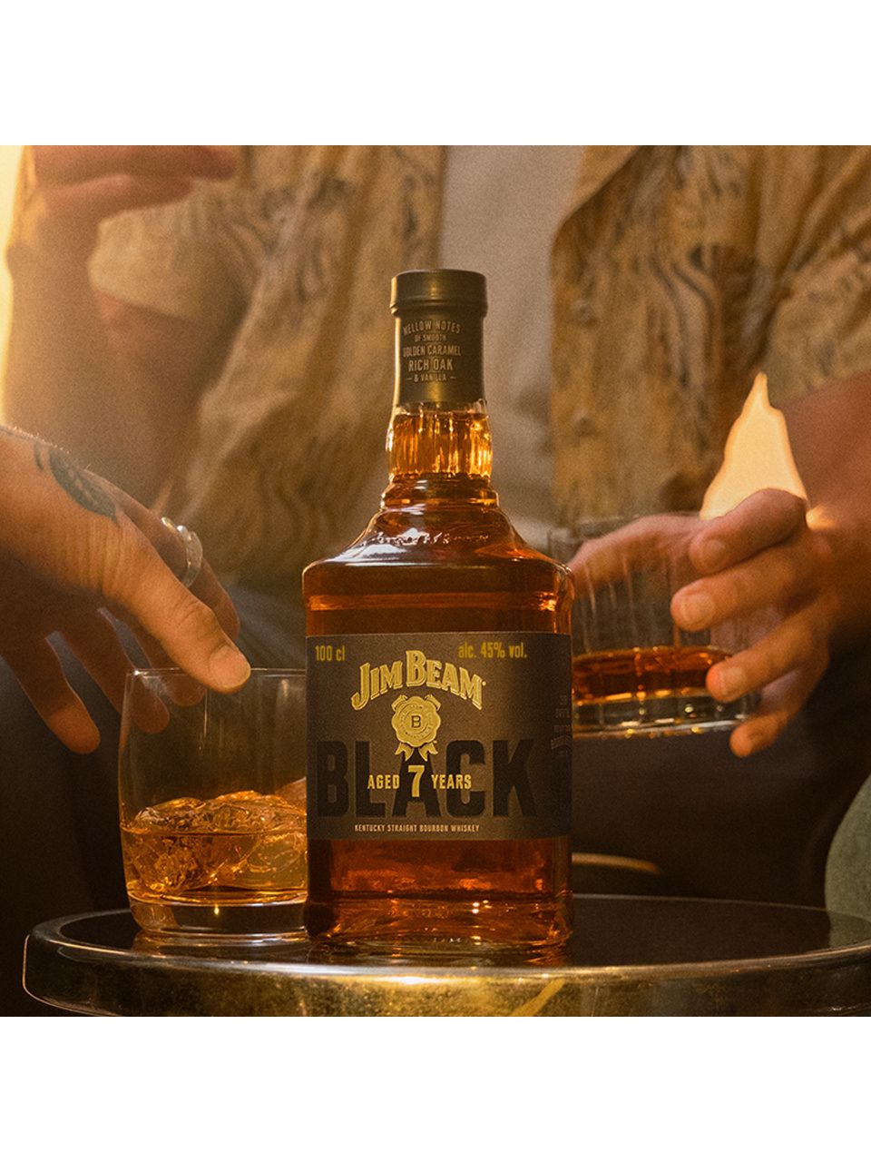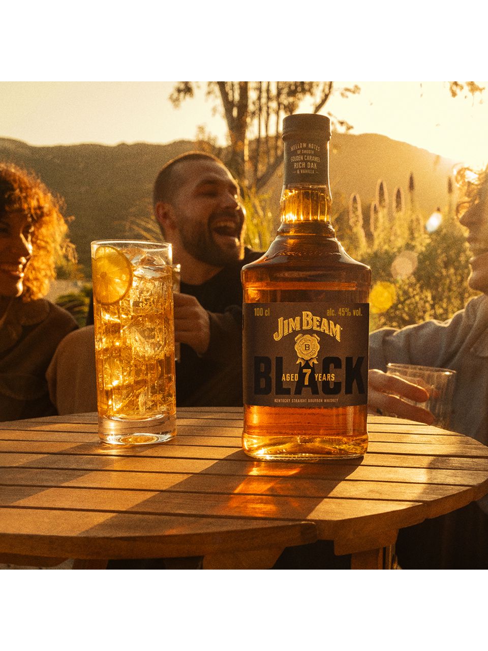 Jeden Moment auskosten. Im siebten Jahr geschieht mit dem Whiskey im Fass etwas Magisches. Wir nennen es den „Sweet Spot“, bei dem eine leichte Geschmeidigkeit auf Noten von Karamell, Vanille und warmer Eiche trifft und die Flüssigkeit einen satten Goldton annimmt. Das ist der sanft-weiche Whiskey, der Sie im neuen Jim Beam Black erwartet. Genießen Sie Jim Beam Black pur, auf Eis oder in einem Jim Beam Black, Bitter und Ginger Ale.