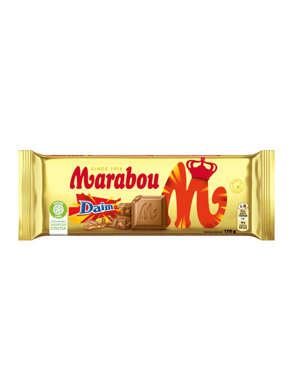 Zarte Milchschokolade mit Daim-Karamell-Stückchen im King-Size-Reiseformat. Eine himmlische Kombination, ideal für Liebhaber von Marabou und Daim.