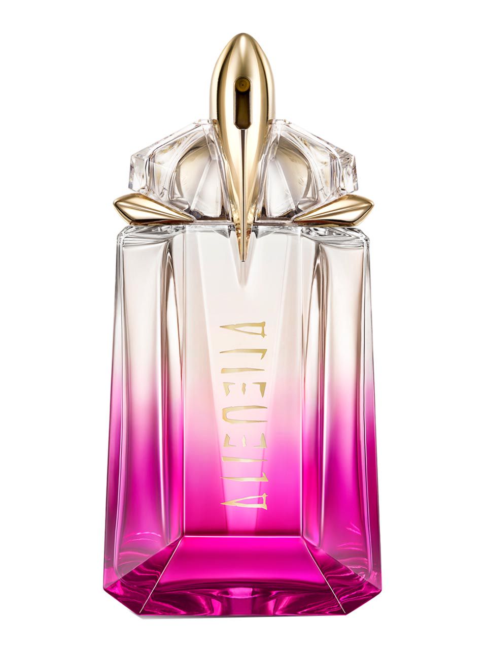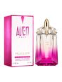 Alien Pulp is a fruity floral fragrance, inspired after the tempting pulpiness of a pink rasperry accord. A supra-sensual and irresistible raspberry accord blends with a creamy jasmine extract and fluffy skin-soft musk. Cashmeran woody musky accents create a scent that captures the essence of charming femininity. Alien is a pulpy addiction you can almost taste. Inspired by Mugler's rupturist vision, Alien luxe fragrance bottle is a talisman, a scultpural gem. Glowing with a delicious ombré from juicy pink to crystal-clear, the iconic faceted bottle embodies the sheer yumminess of Alien Pulp’s new raspberry signature. Alien Pulp Eau de Parfum is born refillable. Recharge all formats with the 100ml refill bottle.
