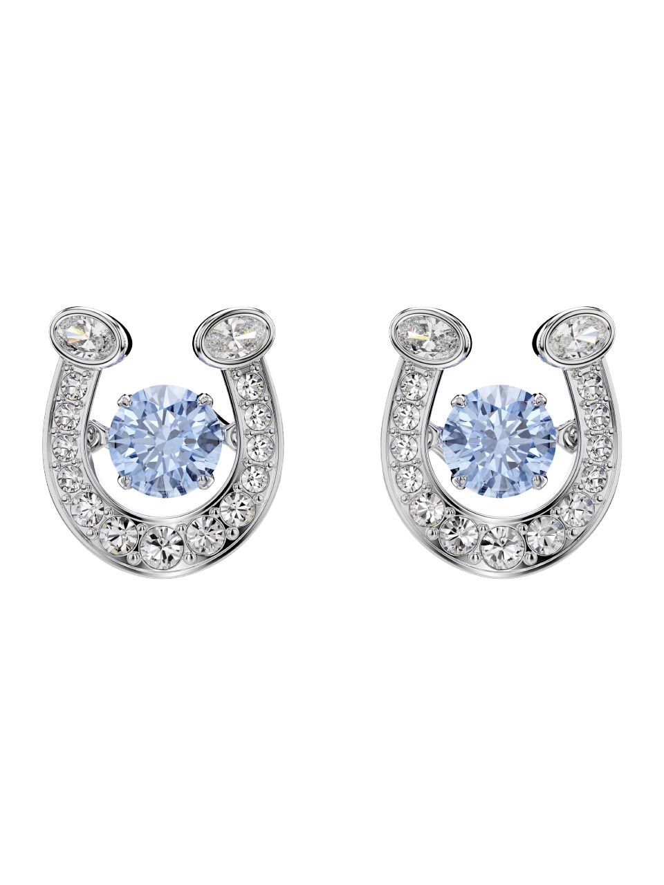 Symbolica stud earrings Round cut, Pavé, Horse shoe, Blue, Rhodium plated