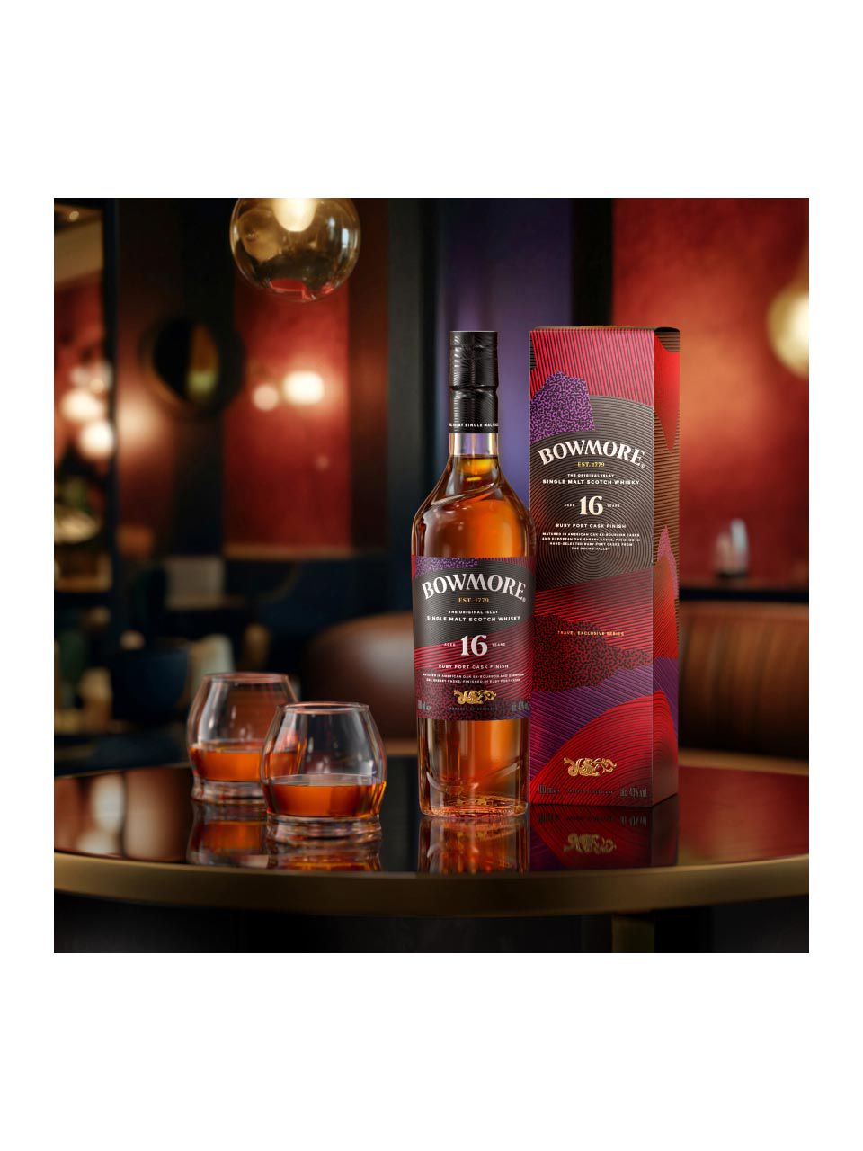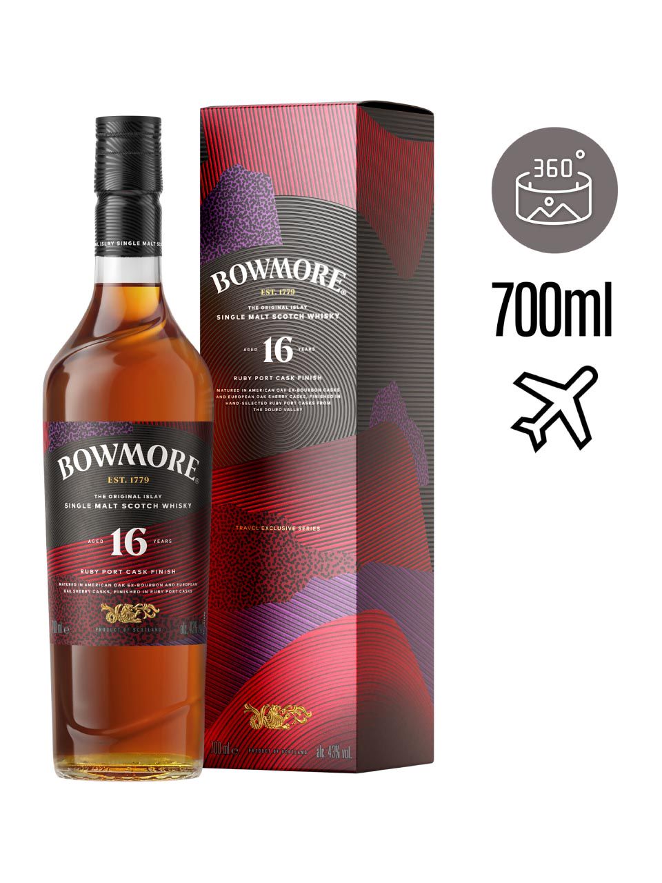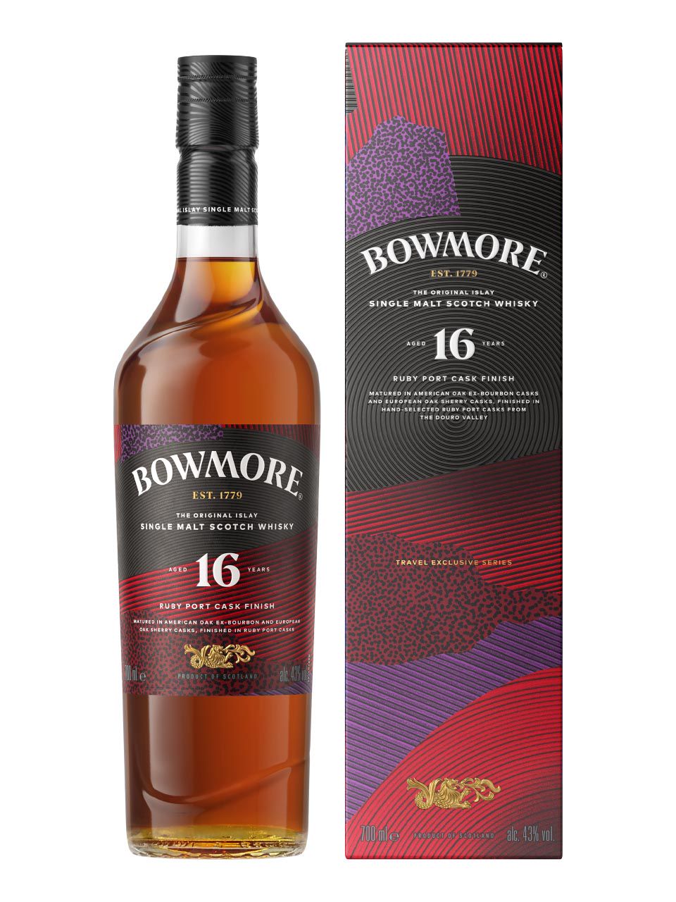 Bowmore 16-year-old Ruby Port Cask is an enchantingly rich and complex Bowmore single malt whisky matured in American Oak ex-Bourbon casks and European Oak Sherry casks, and finished in Ruby Port casks for a unique layer of flavour.