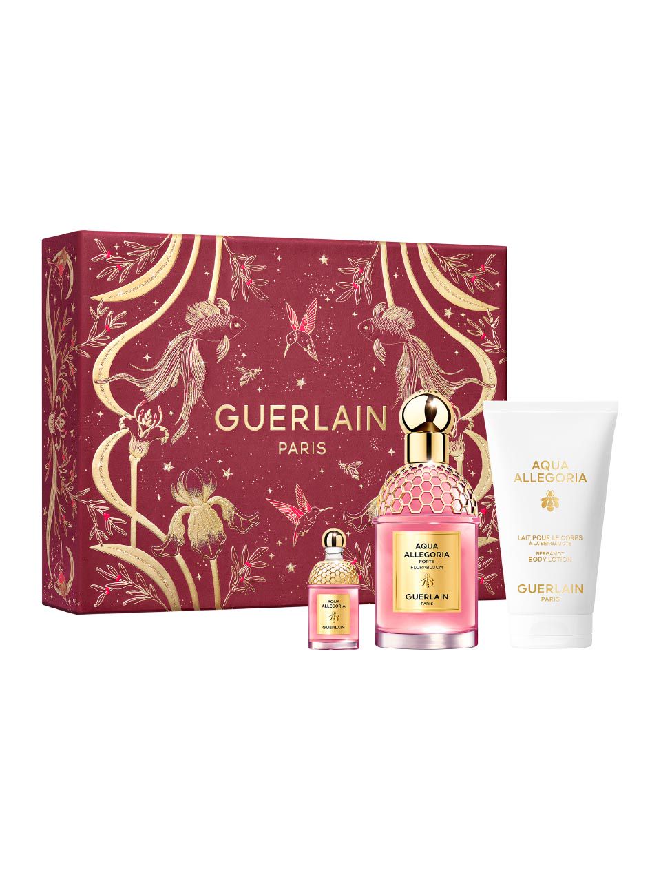 Discover Guerlain’s Christmas gift sets, exquisitely presented in a poetic design adorned with precious details. This set contains: - Aqua Allegoria Forte Florabloom Eau de Parfum (75ml and a miniature 7,5ml). A richly multicoloured floral bouquet underpinned by bold sandalwood and velvety moss. - Bergamot Body Lotion (75ml), which reveals all the vitality of sun-drenched bergamots harvested in the gardens of Calabria, in Italy Guerlain’s gift sets are dressed in an exclusive new deep red design adorned with delicate glittering details. Paper artist Mélissandre Vidal has dreamt up a festive creation inspired by Art Nouveau that pays homage to nature. Give the gift of the House’s iconic creations, brought to life by a wonderful poetic décor. IN THE NAME OF BEAUTY, GUERLAIN COMMITS AND ACTS FOR A MORE BEAUTIFUL AND SUSTAINABLE WORLD, WITH THE BEE AS SENTINEL. This gift box has been designed according to the principles of the circular economy to reduce its environmental impact: - Reusable gift box and removable inner tray - Gift box and sleeve made from recyclable¹ paper and cardboard sourced from well managed forests, certified FSC® - Tube made from at least 26% recycled materials ¹check local recycling guidelines