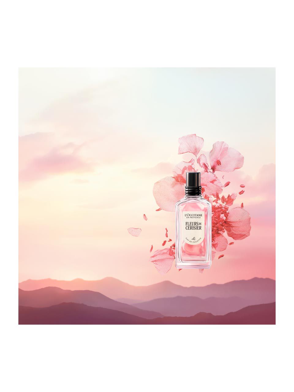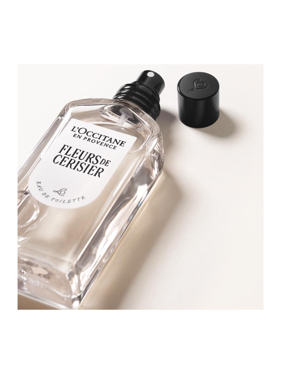 Enriched with cherry extract from the Luberon, this fruity floral Eau de Toilette transports you to the hills of southern France, at the heart of cherry orchards with a fresh and delicate scent. Delight your senses with notes of freesia, cherry and lily of the valley, supported by a base of amber and musk. Rediscover your iconic Fleurs de Cerisier eau de toilette redesigned with a new, modern and minimalist look that reflects the cultural heritage of the Maison L'Occitane en Provence.