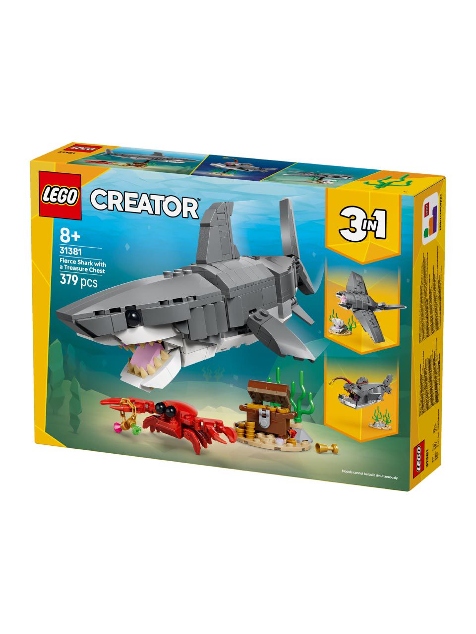Boys and girls aged 8 and over can play out fun underwater stories with this LEGO® Creator 3 in 1 Fierce Shark with a Treasure Chest (31381) building toy. This impressive sea animal toy set offers kids 3 different building options with the same set of bricks. They can choose to build a posable shark toy that can be displayed on a stand with a treasure chest and crab. They can then rebuild it into an anglerfish on a stand with sea plants or a posable manta ray toy on a stand with a clamshell.