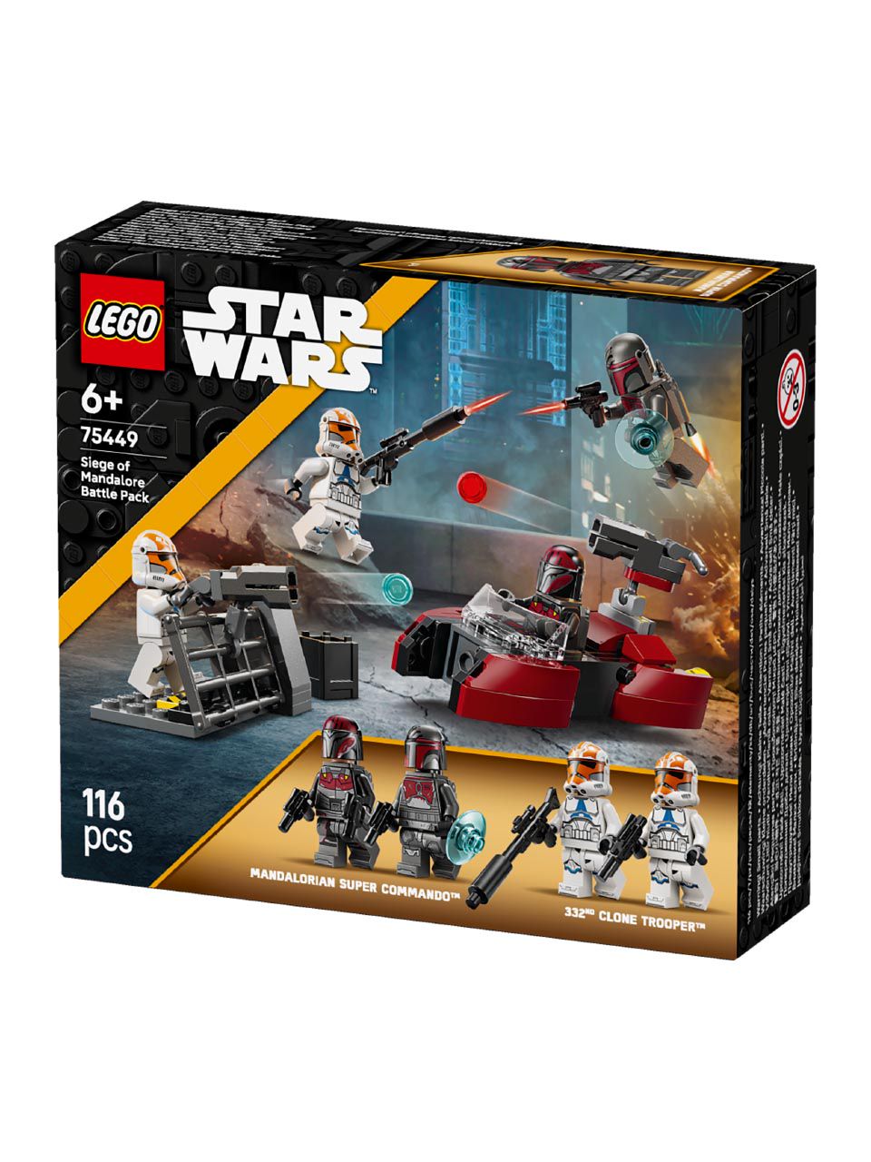 Treat kids to an awesome Battle Pack (75449) to play out their own version of the Siege of Mandalore from Star Wars: The Clone Wars™ . This toy building set features 4 LEGO® Star Wars™ minifigures – 2 Mandalorian Super Commandos and 2 Ahsoka versions of 332nd Clone Troopers, a Mandalorian speeder, the Clone Troopers’ barricade and lots of accessories for action-packed play.