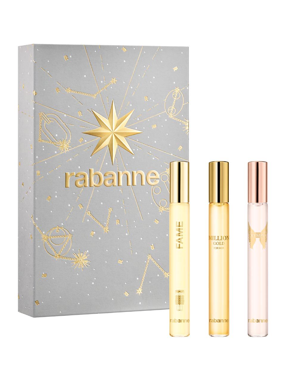 This Holiday season, find your Rabanne superstar. Rabanne captures the magic within the Maison’s iconic codes. Each one becomes a constellation, telling the own unique tale. At the heart of this precious gift, the Rabanne golden star dazzles and illuminates the night. Discover Million Gold for Her Eau de Parfum Travel Spray 10ml, Fame Eau de Parfum Travel Spray 10m and Olympea Eau de ParfumTravel Spray 10ml for a bold, sparkling holiday season.