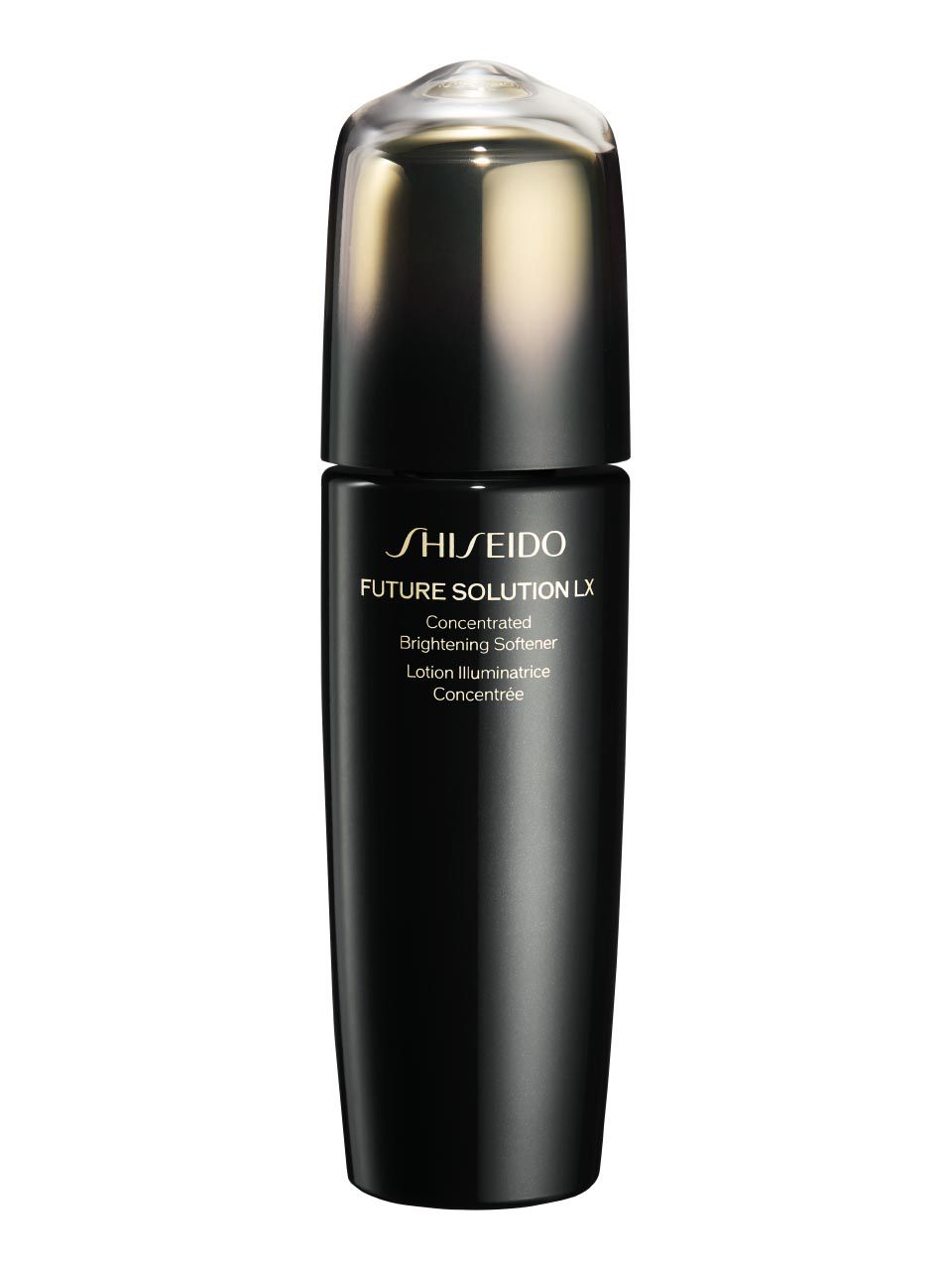 NEW SHISEIDO FUTURE SOLUTION LX CONCENTRATED BRIGHTENING SOFTENER Based on more than 40 years of genetic research. REWRITE YOUR SKIN'S FUTURE REVEAL YOUR ULTIMATE RESILIENT AND RADIANT SKIN WHAT ACTIONS Experience the power of this innovative Softener that contains exclusive Japanese botanical ingredients with a stronger brightening function. For a radiant, moisturized and smooth skin. WHAT BENEFITS It brings out radiance and refines the skin texture for ultimately smooth skin. In 1 week, 84% See their skin more even toned(1) (1)Consumer test on 113 women HOW DOES IT WORK Powered by Contains LX exclusive Japanese botanical ingredients : Rosa fruit extract & 4MSK: helps brighten the skin and improve the appearance of dark spots - TMG: smoothes skin texture - Erythritol & Aqua-In-Pool: Strengthen the skin barrier function The luxuriously concentrated and smooth texture absorbs quickly to envelop the skin while thoroughly delivering effective ingredients to the skin.(2) (2) Stratum corneum