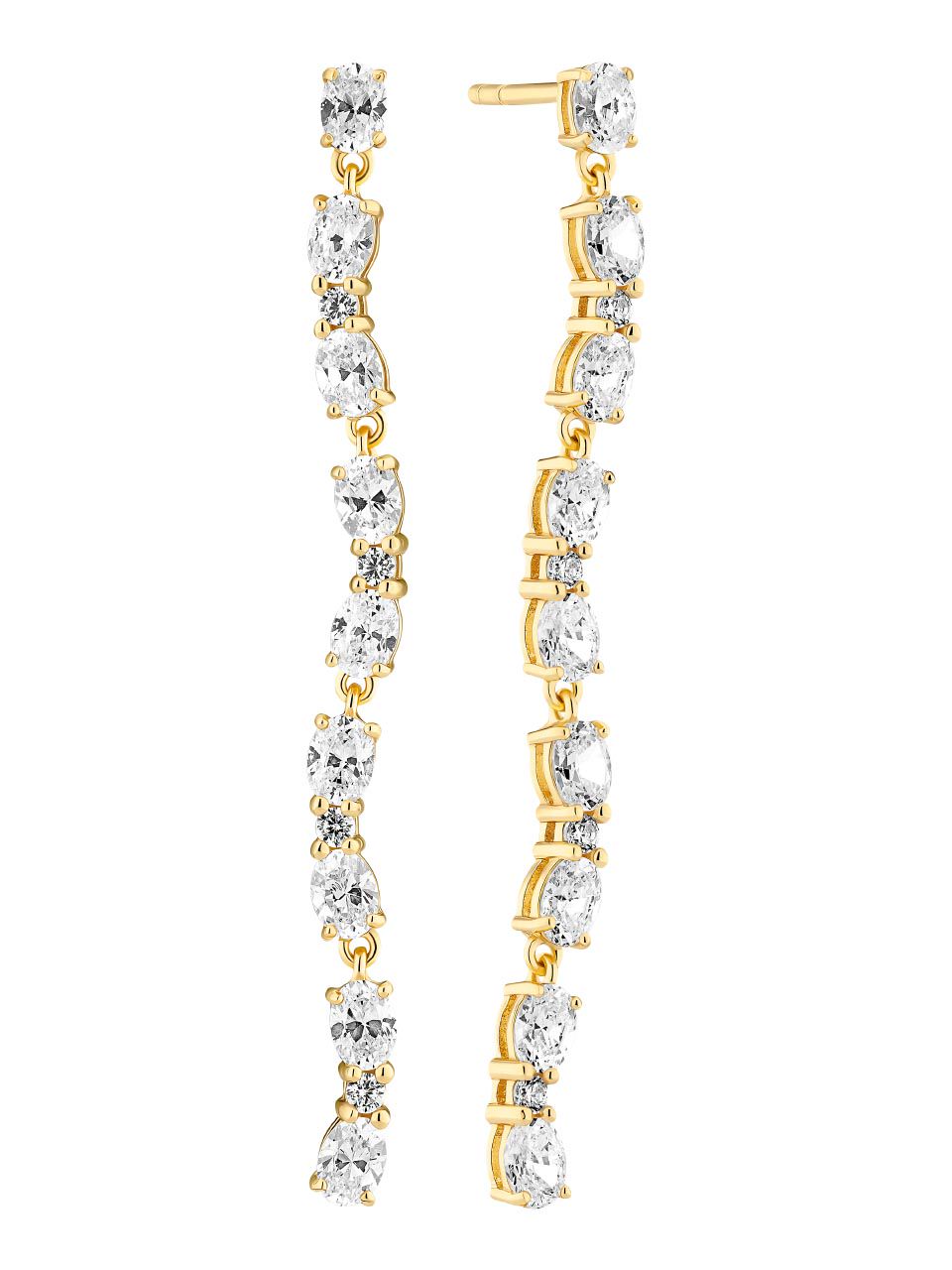 Earrings made of 18k gold plated 925 Sterling silver, polished surface, and handset with facet cut white zirconia.