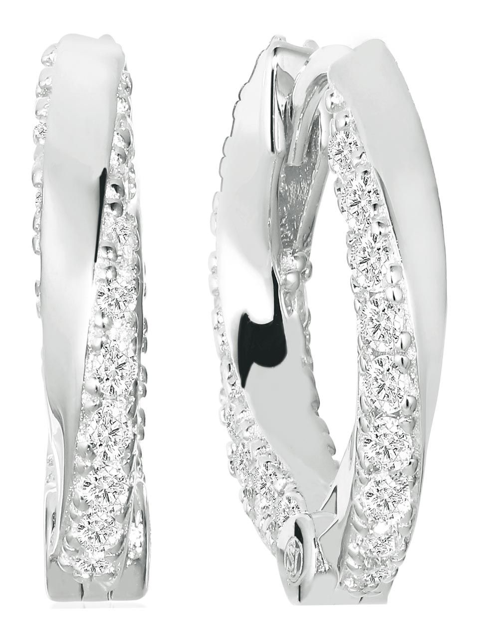 Earrings made of 925 Sterling Silver with rhodium, polished surface and facet cut white zirconia.
