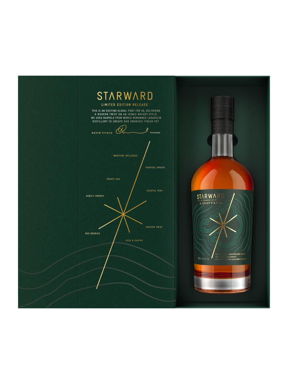 In a global first for Starward, we sourced barrels from world renowned Lagavulin distillery, still soaked in their distinctive Islay malt, and finished out red wine barrel aged whisky for a further 18 months. Inspired by Australian curiosity and Scottish tradition , the tropical notes of our whisky draw on the iconic smokiness of these barrels. Every sip will transport you to a new world of flavour.