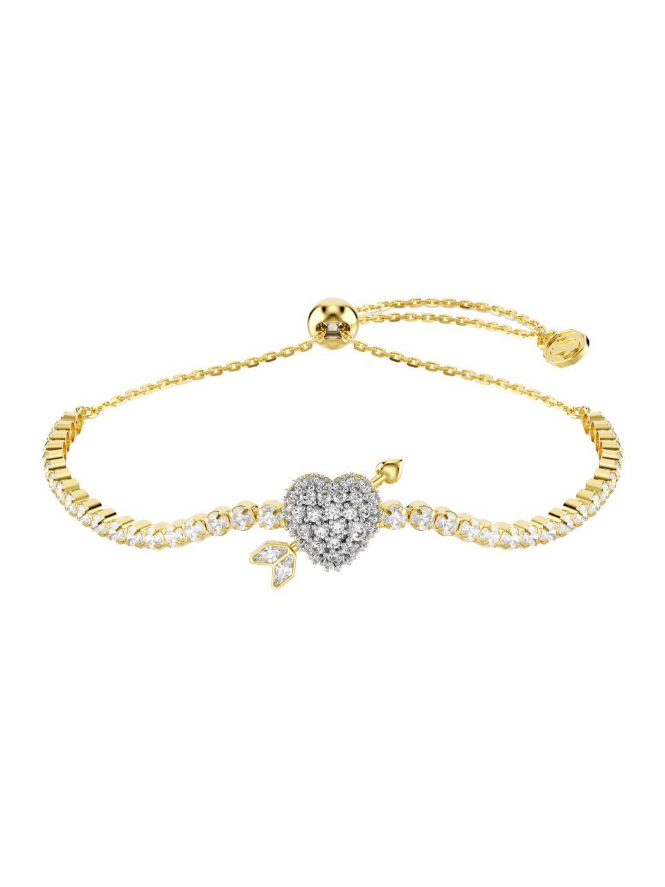 Idyllia bracelet Mixed cuts, Heart with arrow, White, Gold-tone plated