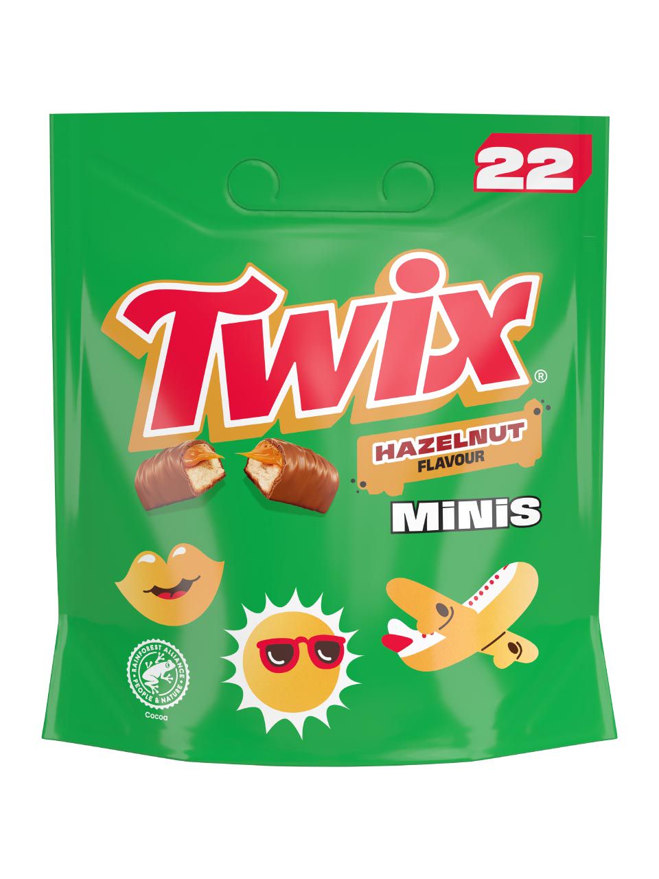 An easy pouch full of delicious Twix bars in a mini format, now with a twist of Hazelnut flavour. Share them with all your friends or family - there's plenty to go round.