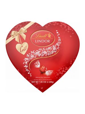 Lindt LINDOR filled milk chocolates in a heart-shaped box