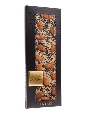 chocoMe ENTRÉE – Valrhona 32% blond chocolate with salt, black sesame and almond 110g