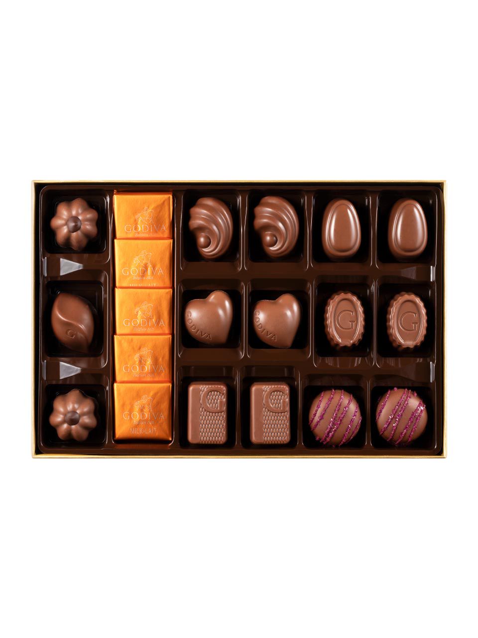 Contains milk, hazelnuts, almonds, soy, macadamia nuts, and wheat.