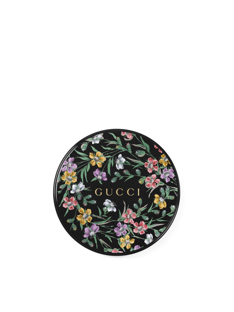 The 87% skincare-based formula is infused with bamboo powder for instant mattification, multi-weight hyaluronic acidhigh molecular weight for instant hydration and low-to-medium molecular weight for long-lasting deep hydration with a plumping effectand black rose oil for its soothing properties. Gucci Éternité de Beauté Cushion Foundation is presented inbeautiful black packaging featuring a colorful floral pattern. Inside, an integrated mirror makes it an on-the-go beauty ally. The clever pointed shape of its bouncy cushion applicator is designed for precise all-over application, especially under the eyes. The soft and smooth sponge is modeled to optimize the foundations absorption and adhesion to the skin, delivering a traceless finish that effortlessly blends in.
