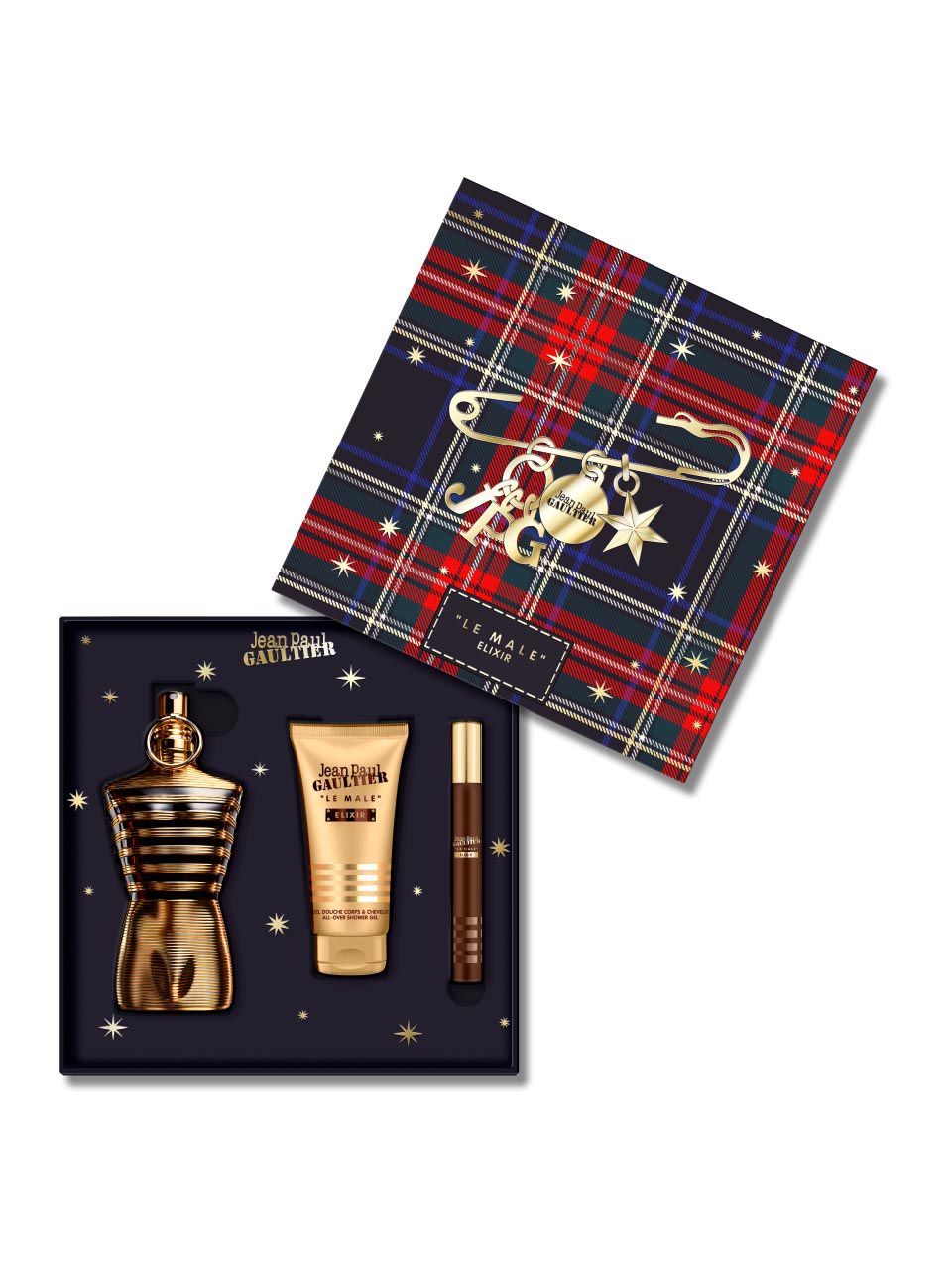 This festive season, Le Male Elixir gift set ignites winter with burning aromatic amber wrapped in classic tartan. In the frozen forest, gazes lift, lights flicker – it commands attention. A single move ignites the world around it. Electric lavender, blazing tonka, hypnotic benzoin: every note of its Eau de Parfum Intense burns through the darkness. And when the celebrations wind down, its shower gel and travel companion, nestled in the gift case, reignite the flame.This festive season, Le Male Elixir gift set ignites winter with burning aromatic amber wrapped in classic tartan. In the frozen forest, gazes lift, lights flicker – it commands attention. A single move ignites the world around it. Electric lavender, blazing tonka, hypnotic benzoin: every note of its Eau de Parfum Intense burns through the darkness. And when the celebrations wind down, its shower gel and travel companion, nestled in the gift case, reignite the flame.