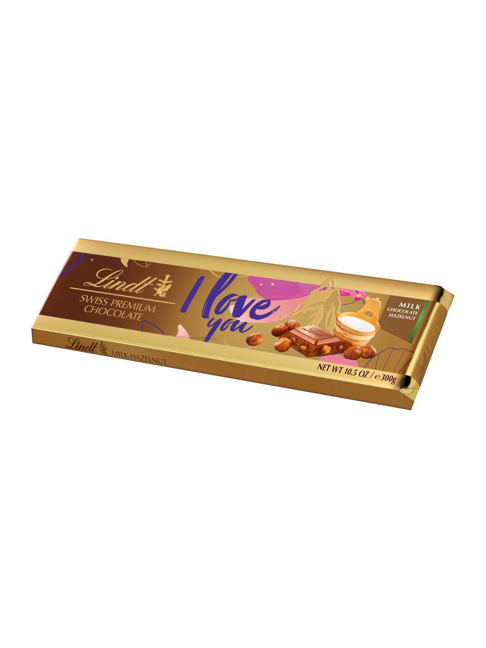sugar, cocoa butter, WHOLE MILK POWDER, HAZELNUTS 15%, cocoa mass, LACTOSE (from MILK), SKIM MILK POWDER, emulsifier (SOYA LECITHIN) , natural flavourings. May contain ALMONDS and other NUTS. Milk chocolate contains: Cocoa solids: 30 % minimum, Milk solids: 19 % minimum.