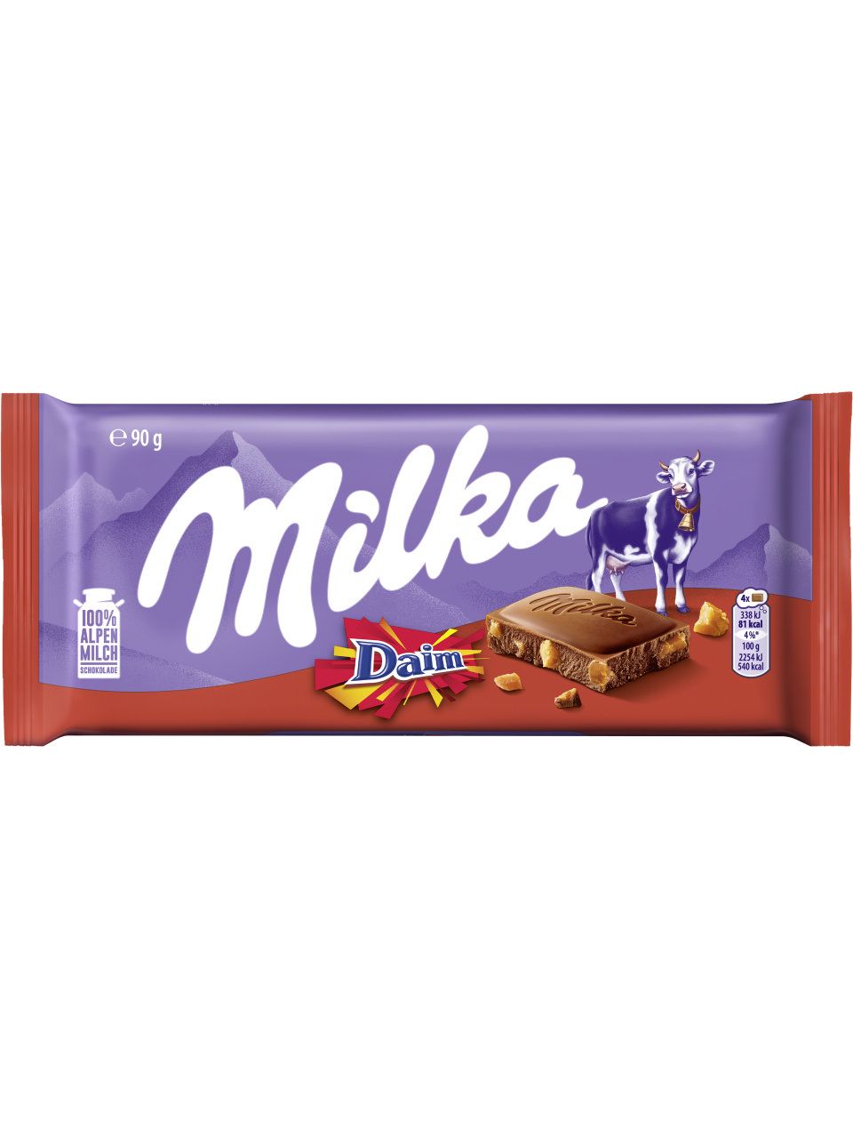 Sugar, cocoa butter, cocoa mass, skimmed milk powder, sweet whey powder (from milk), palm oil, clarified butter, almonds (1%), sweetened condensed skimmed milk, emulsifier (soy lecithin), hazelnut paste, salt, whey product (from milk), flavorings. Cocoa solids: 33% minimum in the Alpine milk chocolate.
