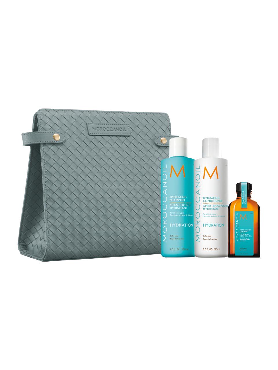 MOT - CYCLOMETHICONE, DIMETHICONE, ARGANIA SPINOSA KERNEL OIL, PARFUM/FRAGRANCE, LINUM USITATISSIMUM SEED EXTRACT, CI 26100 (RED NO. 17), CI 47000 (YELLOW NO. 11). Hydrating shampoo - WATER/AQUA, SODIUM LAUROYL SARCOSINATE, COCAMIDOPROPYL HYDROXYSULTAINE, COCAMIDOPROPYL BETAINE, PERFUME, LACTAMIDE MEA, GLYCERIN, ACRYLATES/PALMETH-25 ACRYLATE COPOLYMER, ARGANIA SPINOSA (ARGAN) KERNEL OIL, CHONDRUS CRISPUS (CARRAGEENAN) EXTRACT, ASCOPHYLLUM NODOSUM EXTRACT , LAMINARIA SACCHARINA EXTRACT , PALMARIA PALMATA EXTRACT , UNDARIA PINNATIFIDA EXTRACT , XYLITYLGLUCOSIDE, PEG-150 PENTAERYTHRITYL TETRASTEARATE, ANHYDROXYLITOL, SODIUM PCA, STYRENE/ACRYLATES COPOLYMER, PEG-6 CAPRYLIC/CAPRIC GLYCERIDES, CITRIC ACID, LAURIC ACID, POLYQUATERNIUM-7, PROPYLENE GLYCOL, XYLITOL , SODIUM SARCOSINATE, TETRASODIUM EDTA , POLYSORBATE 20, DISODIUM EDTA, ETHYLHEXYLGLYCERIN, PEG-20 GLYCERYL LAURATE, GLUCOSE , TOCOPHEROL, LINOLEIC ACID, RETINYL PALMITATE, CAPRYLIC/CAPRIC TRIGLYCERIDE, DIETHYLHEXYL SYRINGYLIDENEMALONATE , PHENOXYETHANOL, SODIUM BENZOATE, POTASSIUM SORBATE, CHLORPHENESIN, ALPHA-ISOMETHYL IONONE, LINALOOL, HYDROXYCITRONELLAL. Hydrating conditioner -WATER/AQUA, DIMETHICONE, CETEARYL ALCOHOL, FRAGRANCE, BEHENTRIMONIUM CHLORIDE, ACETAMIDE MEA, Canola oil, ARGANIA SPINOSA (ARGAN) KERNEL OIL, ALLIUM SATIVUM (GARLIC) BULB EXTRACT , ANTHEMIS NOBILIS FLOWER EXTRACT , ARCTIUM LAPPA ROOT EXTRACT , ARNICA MONTANA FLOWER EXTRACT , HEDERA HELIX (IVY) EXTRACT , LAMIUM ALBUM FLOWER EXTRACT , NASTURTIUM OFFICINALE LEAF EXTRACT , PINUS SYLVESTRIS BUD EXTRACT , ROSMARINUS OFFICINALIS (ROSMARY) LEAF EXTRACT , HYDROLYZED VEGETABLE PROTEIN PG-PROPYL SILANETRIOL, CITRIC ACID, ACRYLATES COPOLYMER, POLYQUATERNIUM-37, PPG-1 TRIDECETH-6, CAPRYLYL GLYCOL , PROPYLENE GLYCOL , SORBITAN OLEATE, PROPYLENE GLYCOL DICAPRYLATE/DICAPRATE, ISOPROPYL ALCOHOL, DISODIUM EDTA, CHLORPHENESIN, PHENOXYETHANOL , POTASSIUM SORBATE, ALPHA-ISOMETHYL IONONE, LINALOOL, HYDROXYCITRONELLAL.