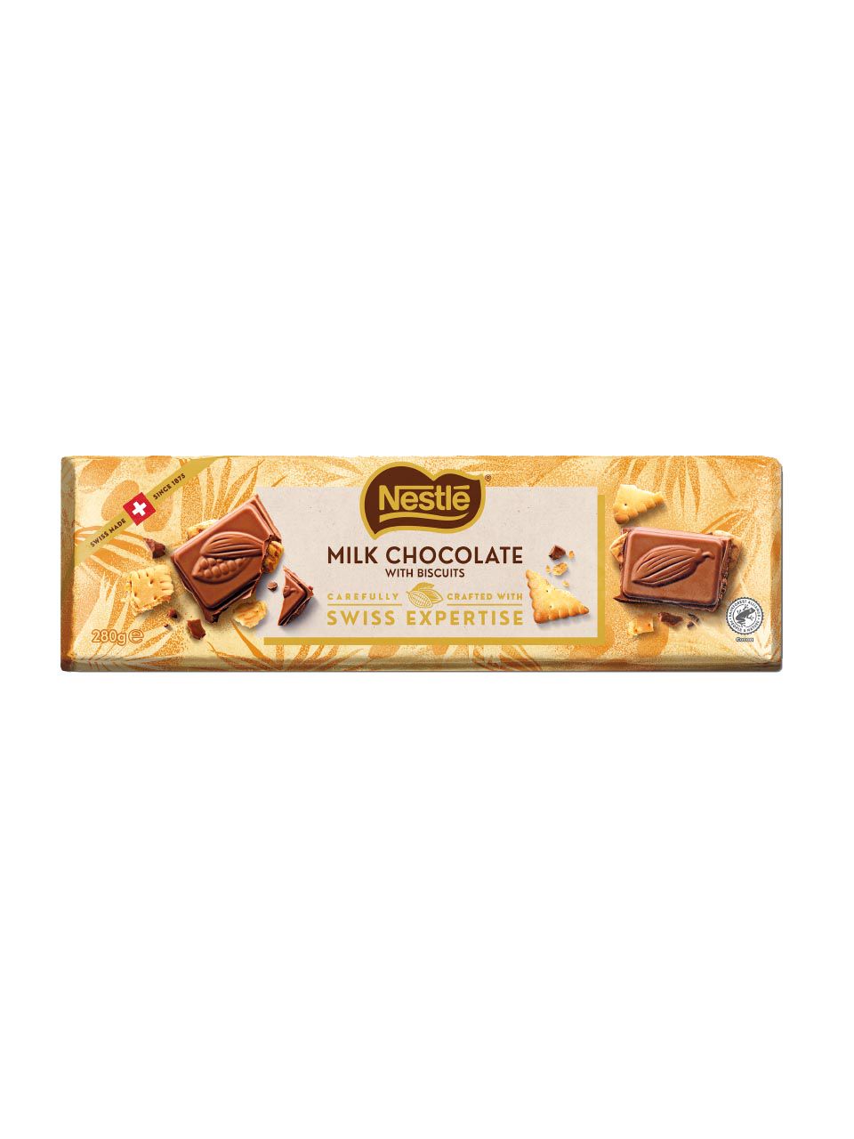 Ingredients: sugar, cocoa butter1, cocoa mass1, whole MILK powder, biscuit pieces 12% (WHEAT flour, sugar, coconut fat, potato starch, invert sugar syrup, butter (from MILK), skimmed MILK powder, glucose syrup,