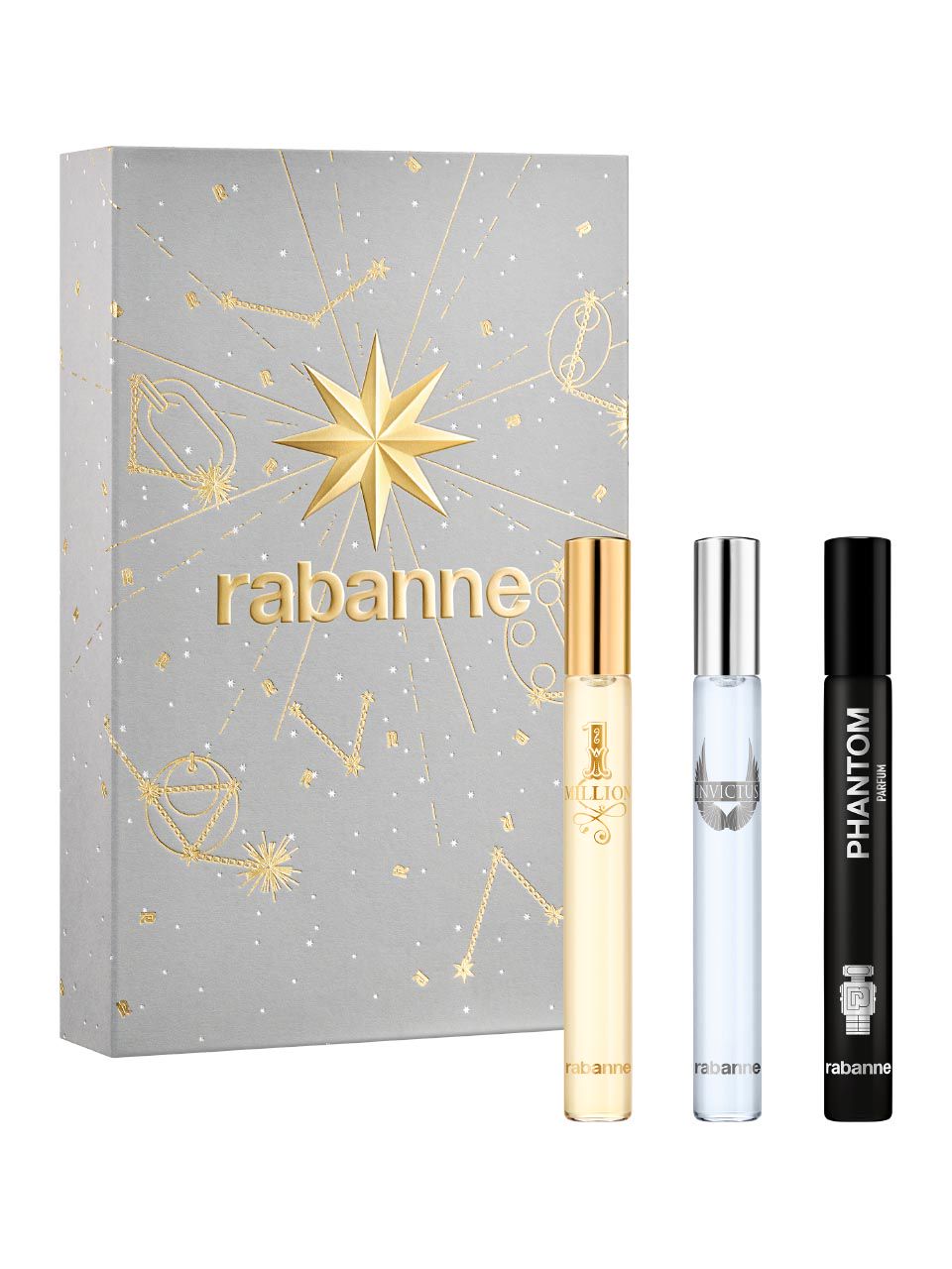 This Holiday season, find your Rabanne superstar. Rabanne captures the magic within the Maison’s iconic codes. Each one becomes a constellation, telling the own unique tale. At the heart of this precious gift, the Rabanne golden star dazzles and illuminates the night. Discover 1 Million Eau de toilette Travel Spray 10ml, Invictus Eau de Toilette Travel Spray 10m and Phantom Parfum Travel Spray 10ml for a bold, sparkling holiday season.This Holiday season, find your Rabanne superstar. Rabanne captures the magic within the Maison’s iconic codes. Each one becomes a constellation, telling the own unique tale. At the heart of this precious gift, the Rabanne golden star dazzles and illuminates the night. Discover 1 Million Eau de toilette Travel Spray 10ml, Invictus Eau de Toilette Travel Spray 10m and Phantom Parfum Travel Spray 10ml for a bold, sparkling holiday season.