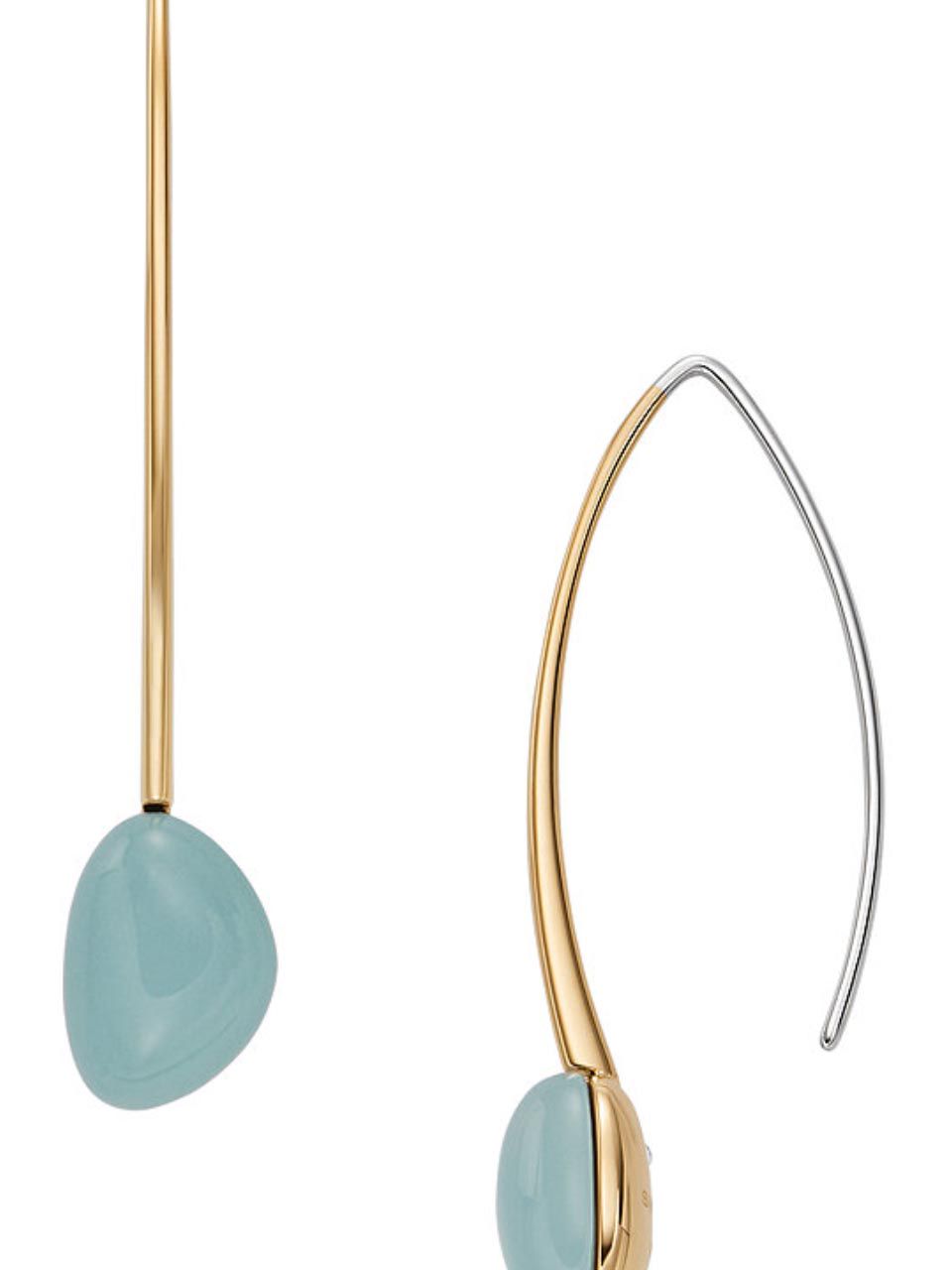 These gold-tone stainless steel pull-through earrings feature an organic-shaped mint green sea glass drop.These gold-tone stainless steel pull-through earrings feature an organic-shaped mint green sea glass drop.