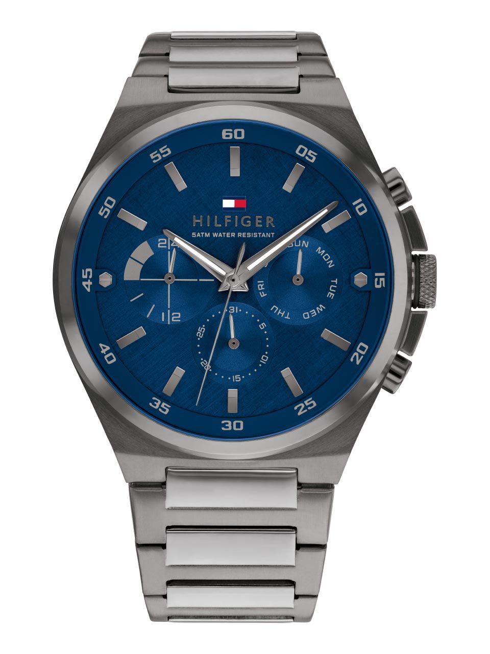 An everyday watch with an industrial design. The distressed texture dial adds interest while keeping it subtle. Dimensional indexes and screw details give a rugged look, and the multifunction movement makes this watch for him, a must. Link bracelets and leather straps. Multi-function, 46MM